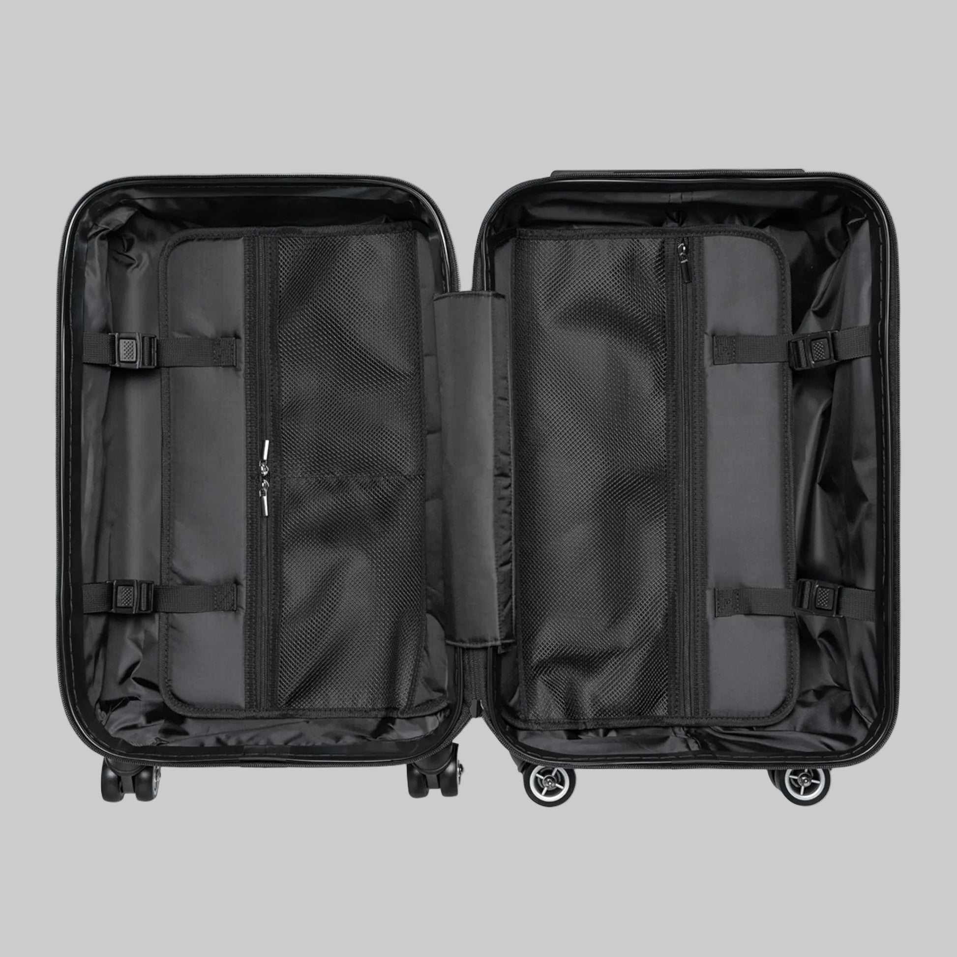 Two spacious pockets for organized packing. The four double-wheels offer smooth, 360° swivel for effortless maneuvering. For added security, the suitcase includes a built-in lock.